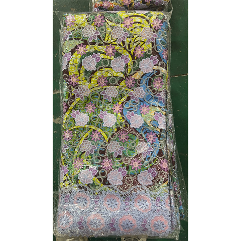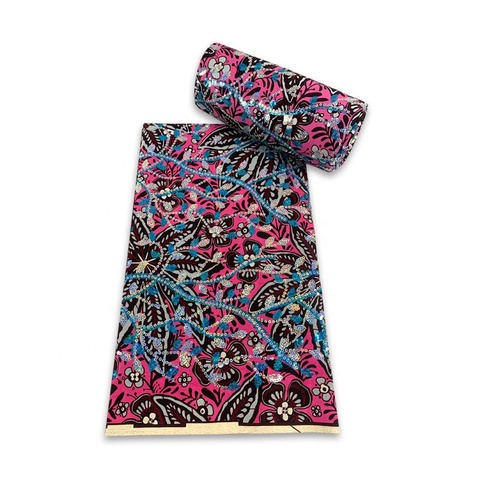 Tissus de cire pailletée Tissu de cire africaine en coton Tissu de dentelle brodée de fleurs Tissu de dentelle 5 Yards