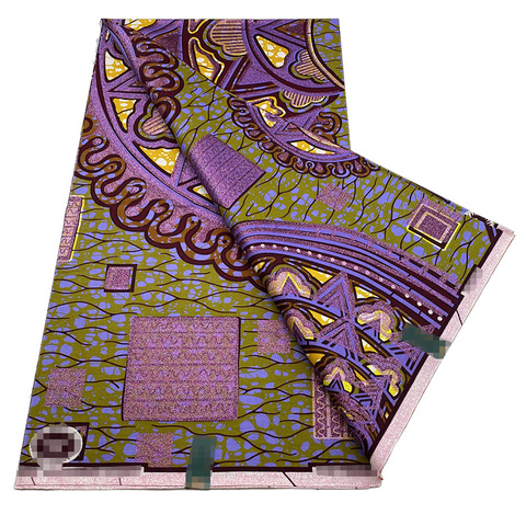 Tissu africain en coton ciré Grand tissu ciré imprimé or Tissu ciré Ghana Glitter Style Ankara Tissu